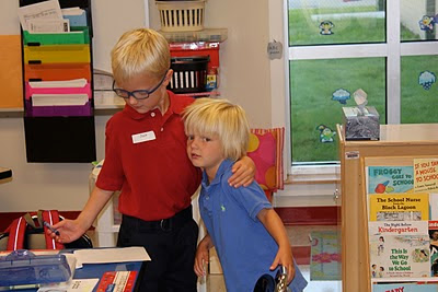 Little Finley (who thankfully has 17 years before he starts kindergarten), climbed out of his Dad's arms and said he wanted to say goodbye to his brother.
